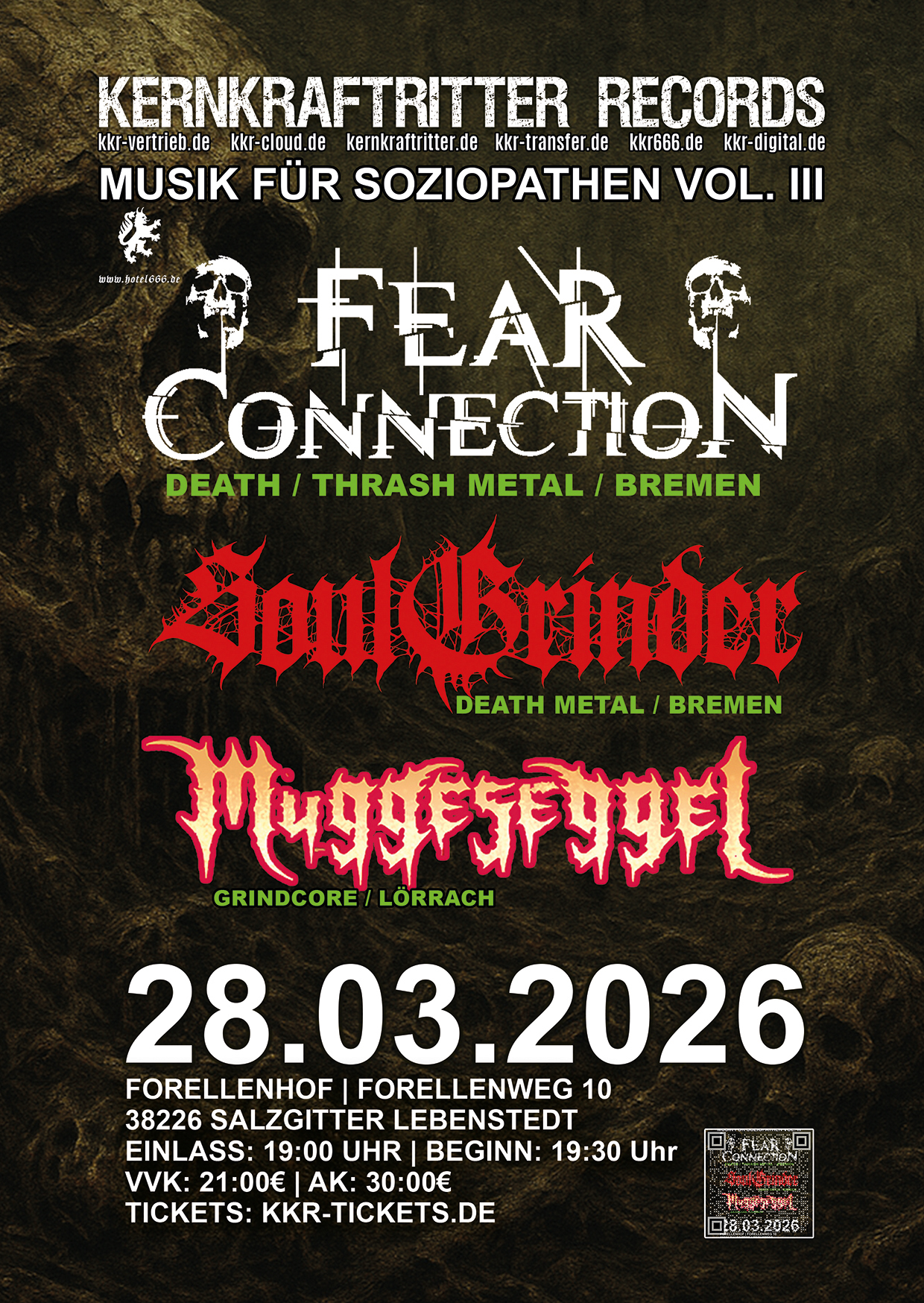 Bald ist es soweit und wir starten Musik für Soziopathen Vol.III im Forellenhof in Salzgitter, mit dabei sind Muggeseggel und Soul Grinder und Fear Connection