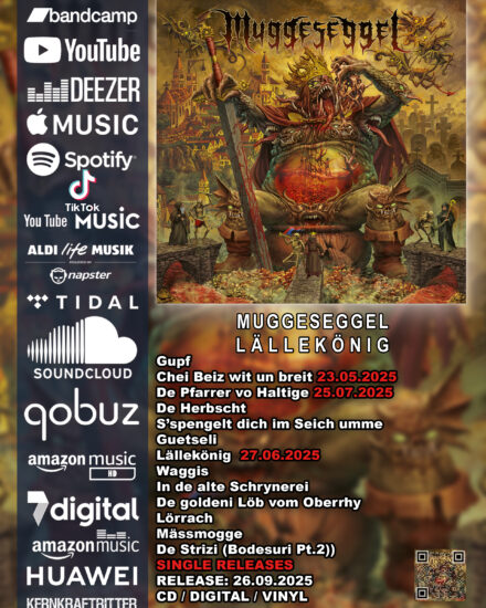 Hallo Freunde, die Wartezeit ist vorbei – MUGGESEGGEL schlagen morgen, am Freitag, den 25.07.2025, wieder gnadenlos zu! Ihre neue Single „De Pfarrer vo Haltige“ steht ab Mitternacht in allen gängigen...