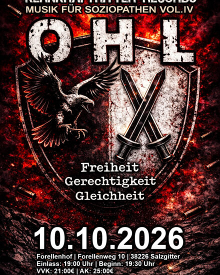 Es ist zwar noch etwas hin aber am 10.10.2025 spielen OHL in Salzgitter im Forellenhof, eine facebook Veranstaltung gibt es bereits Musik für Soziopathen Vol.IV – OHL live in Salzgitter Tickets kann man bereits...